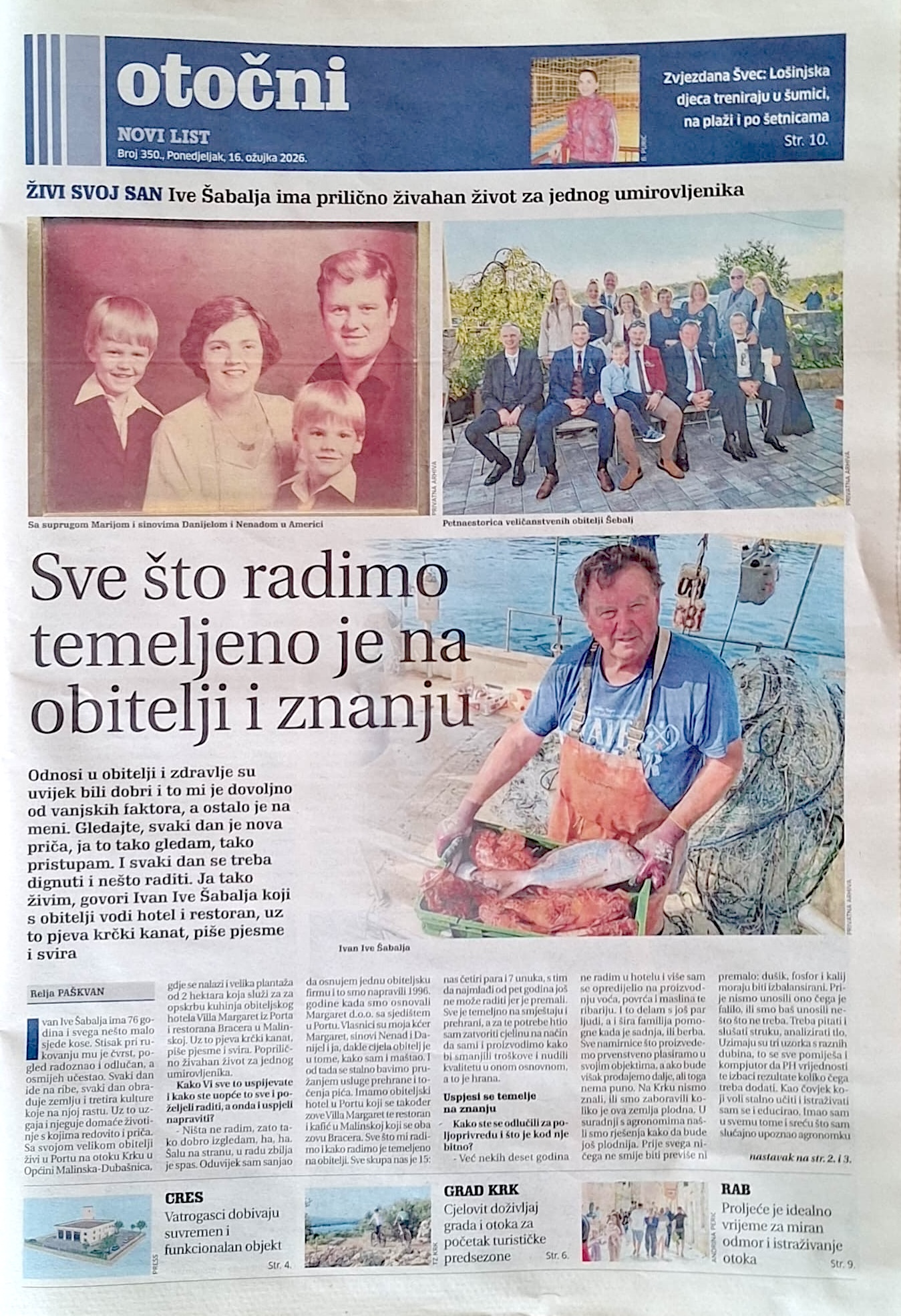 Restoran Villa Margaret i konoba Bracera donose samo najbolje iz mora na vaš tanjur. Naime, većina ribe za potrebe gostiju hotela i gostiju Bracere Inna svako jutro stiže svježa u kuhinje, a od ulovljenog svakodnevno se sastavlja jelovnik. Riba koju Ivo Šabalja i dalje svako jutro odlazi uloviti iz mora na stol stiže za nekoliko sati.